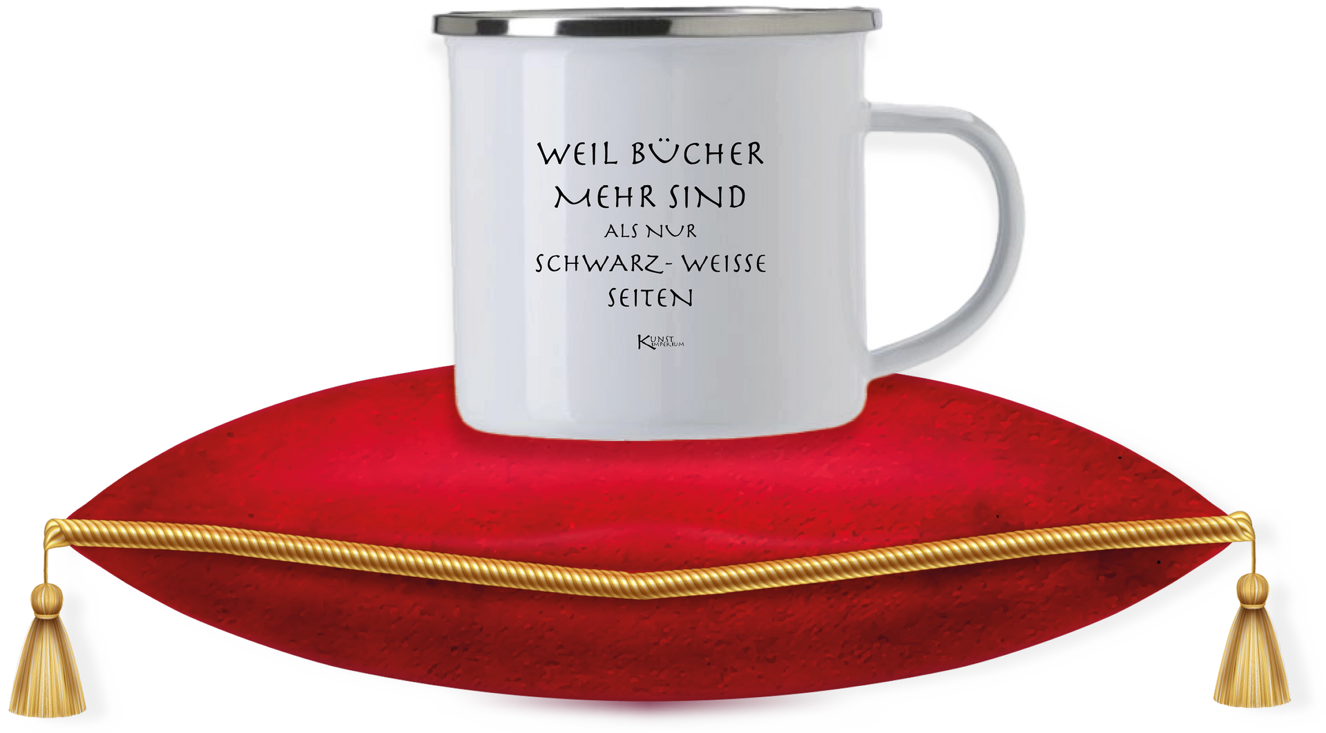 Genieße jetzt eine besonders entspannte und kuschelige Lesezeit mit unserer inspirierenden Emaille- Tasse.