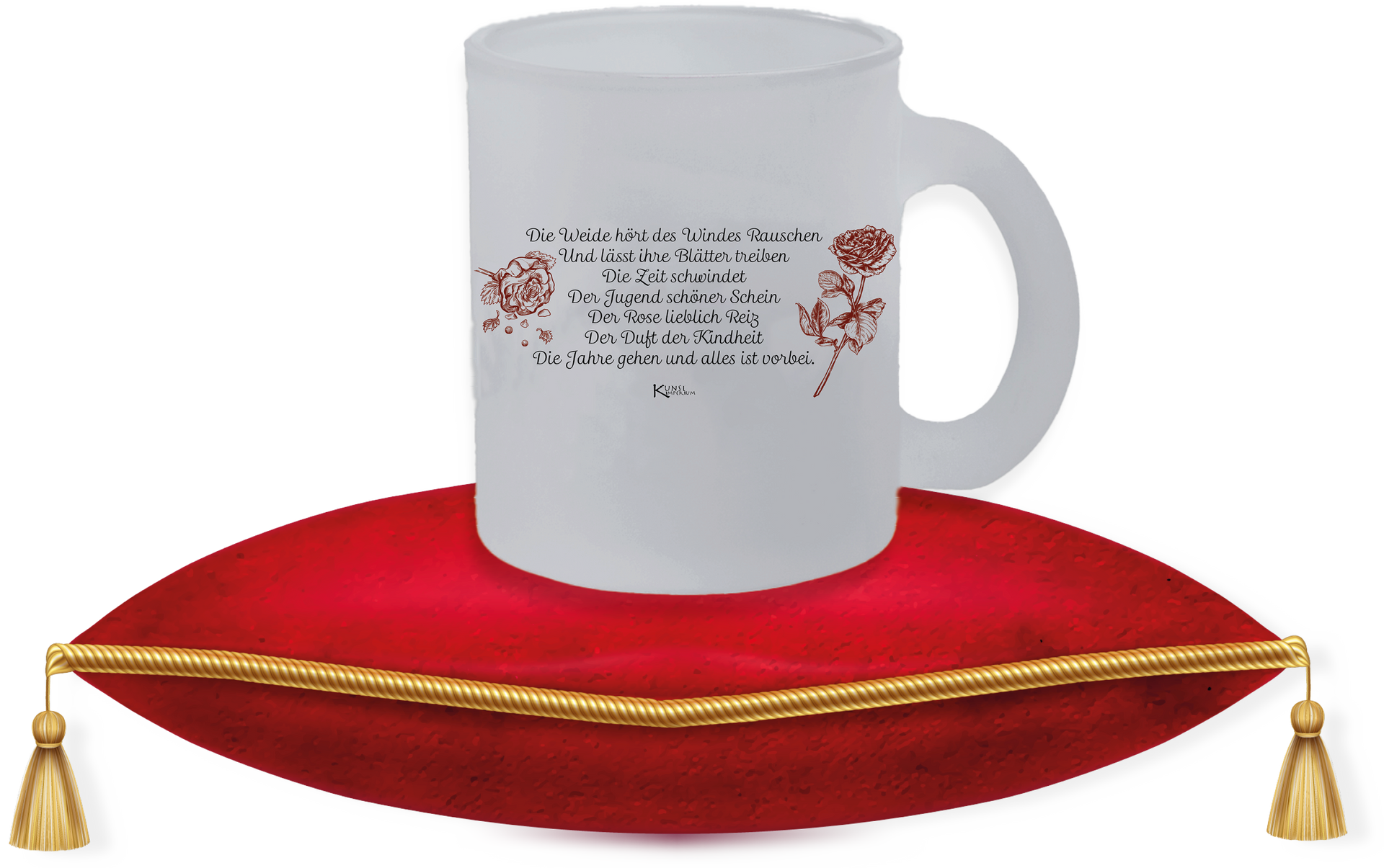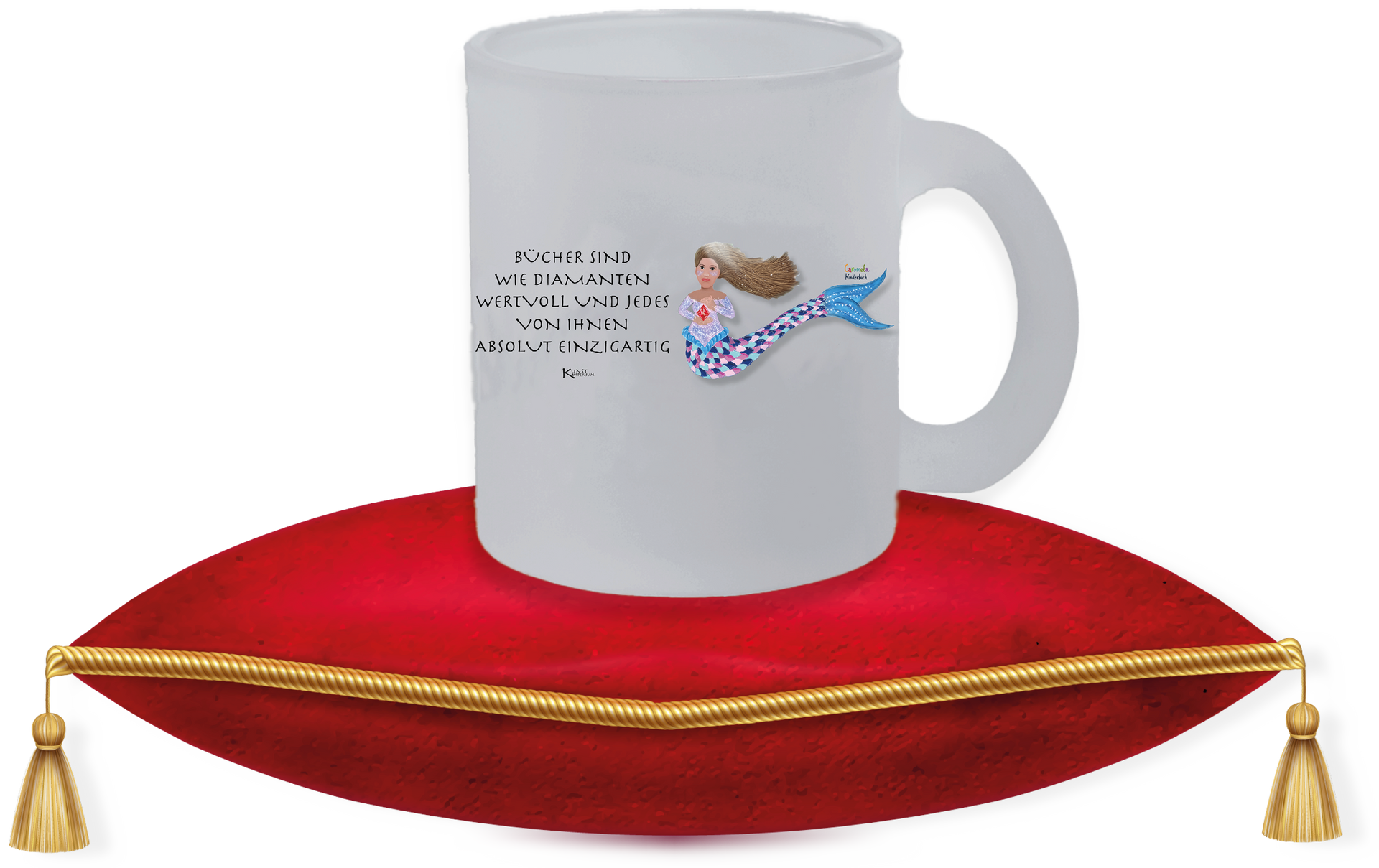 Genieße unseren märchenhaften Vibe nicht nur als Blinddatebook, sondern jetzt auch als edle Milchglastassen.